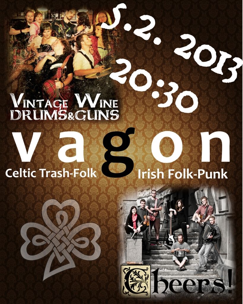 Jestli si poslední dobou nemáte co pískat, tady toho bude víc než dost! Pražský Vintage Wine a Plzeňský Cheers! dohromady v jednom vagonóznim lokále. Večer plnej blouznivých melodií a punku s kapkou keltský krve a litry