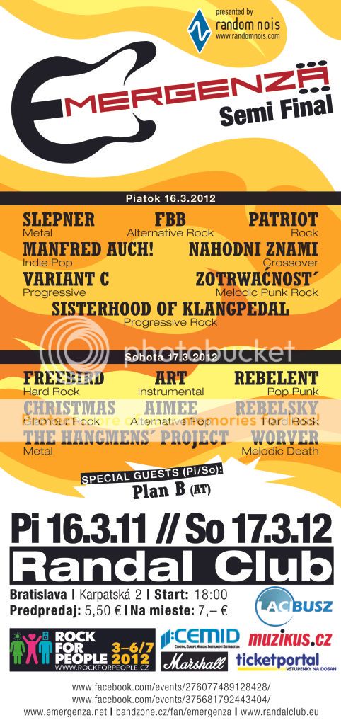 potrebovať VÁS, milí ľudia aby ste nám svojimi hlasmi pomohli posunúť sa vyššie. Lístok za predpredajovú cenu 5€ (8 kapiel v jeden večer!) si môžete zakúpiť u