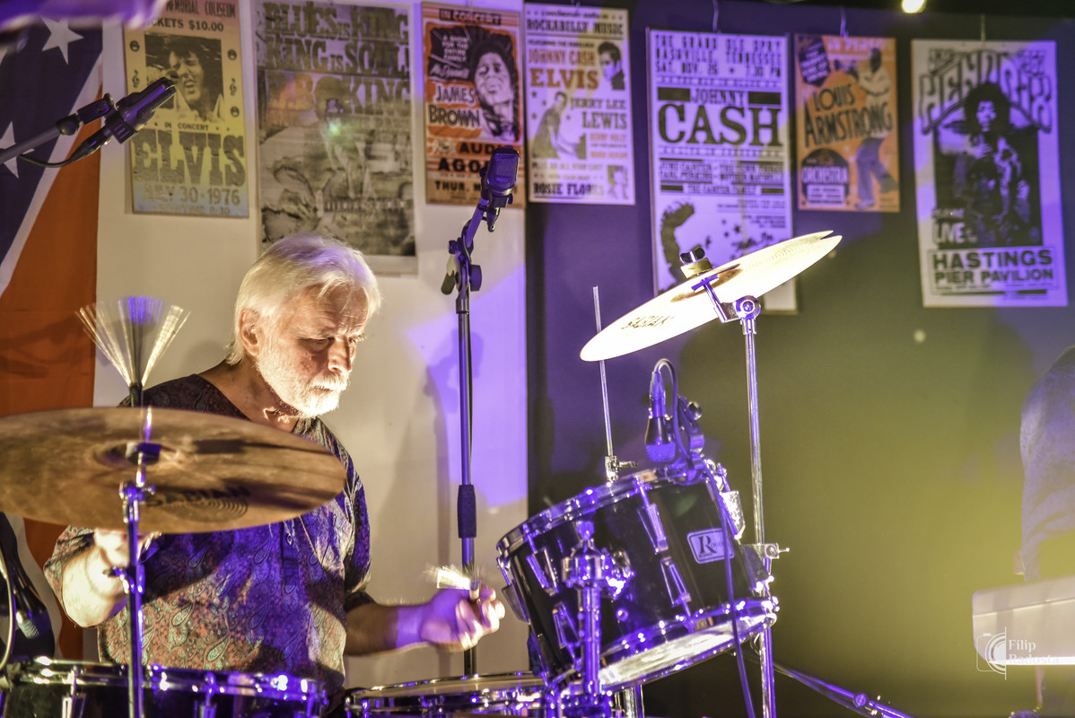 Na začátku letošního roku pak přijal výzvu a sice ač duší rocker, převzal v JuKi Bandu úlohu swingového bubeníka. Tak Pavel nyní pilně denně cvičí jazzové standarty a svými bicími již dodává kapele typický jazzově – swingový „šmrnc“.