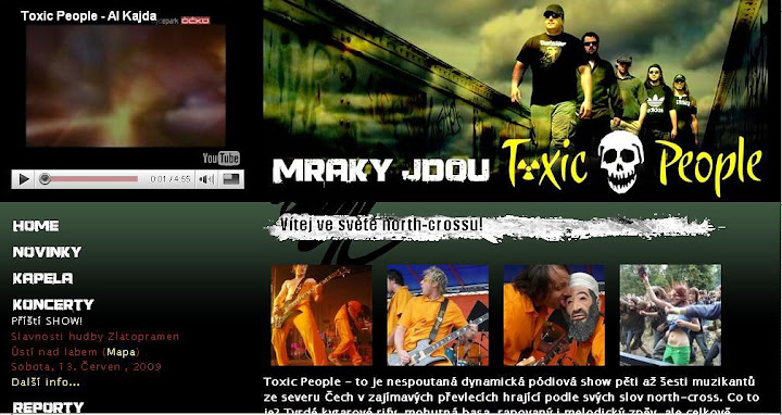 Máme nově udělané ofiko stránky toxicpeople.cz Na jejich výrobě má zásluhu firma webprodukt.cz (doporučujeme) včele s Hugem! Ten nyní náš web ještě vychytává, takže máteli nějaké připomínky, podněty, které by ještě vytunily náš web, pište do vzkazů. Díky!
