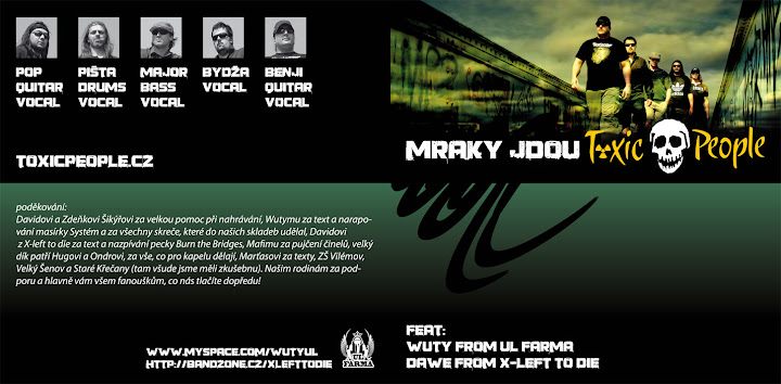 Brzy se také dočkáte nového webu na ofiko stránkách www.toxicpeople.cz !!! Konečně! CD bude vylisováno asi 4. května, dáme vědě a můžete začít objednávat. Předpokládaná cenu bude směšných 99,- Kč.